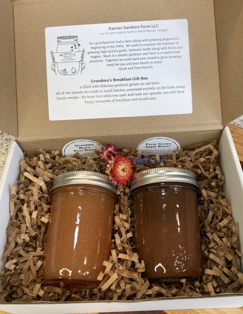 This selection contains Apple Butter, smooth, velvety and spiced just right, it’s great on toast, fresh hot buttered rolls, or even as an accompaniment for pork chops. Also can be a great addition to a charcuterie board. Along with the Apple Butter, we have Grandma Mae’s Pear Honey. This is a sweet spread made simply with pears, sugar and vanilla bean. Amazing on toast, pancakes, waffles, or anytime you would use jam.